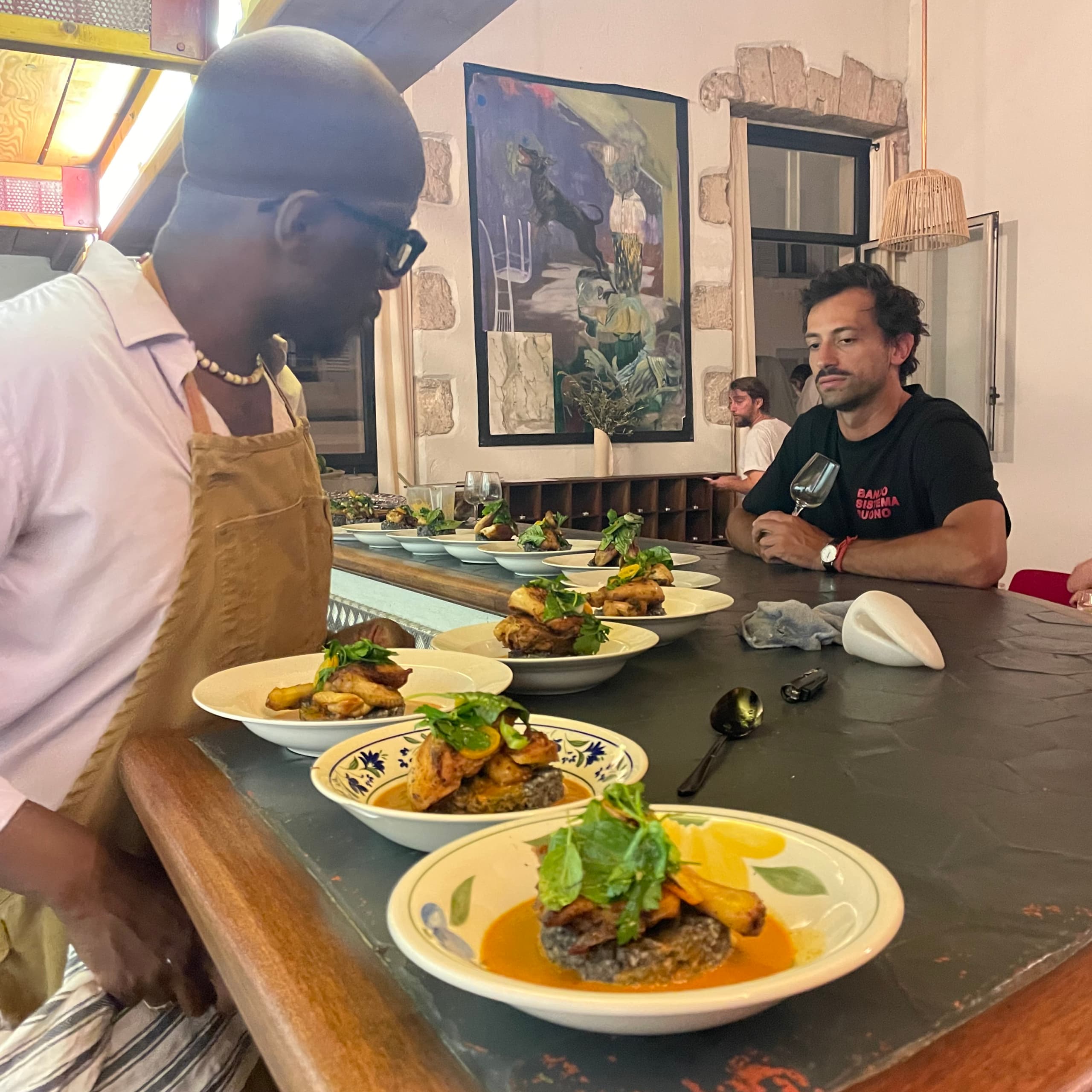 De mannen achter l’Ambassadeur zijn niet zomaar koks, het zijn verhalenvertellers en smaakmakers. Hun roots liggen in onder andere Brazzaville, Hong Kong en Marseille, en dat proef je terug. Met open armen en goede muziek op de achtergrond word je met liefde ontvangen. We willen graag een gezamenlijke ervaring aanbieden, daarom zullen het shared dining gerechten (die je natuurlijk ook gerust in je eentje mag opeten) zijn!
