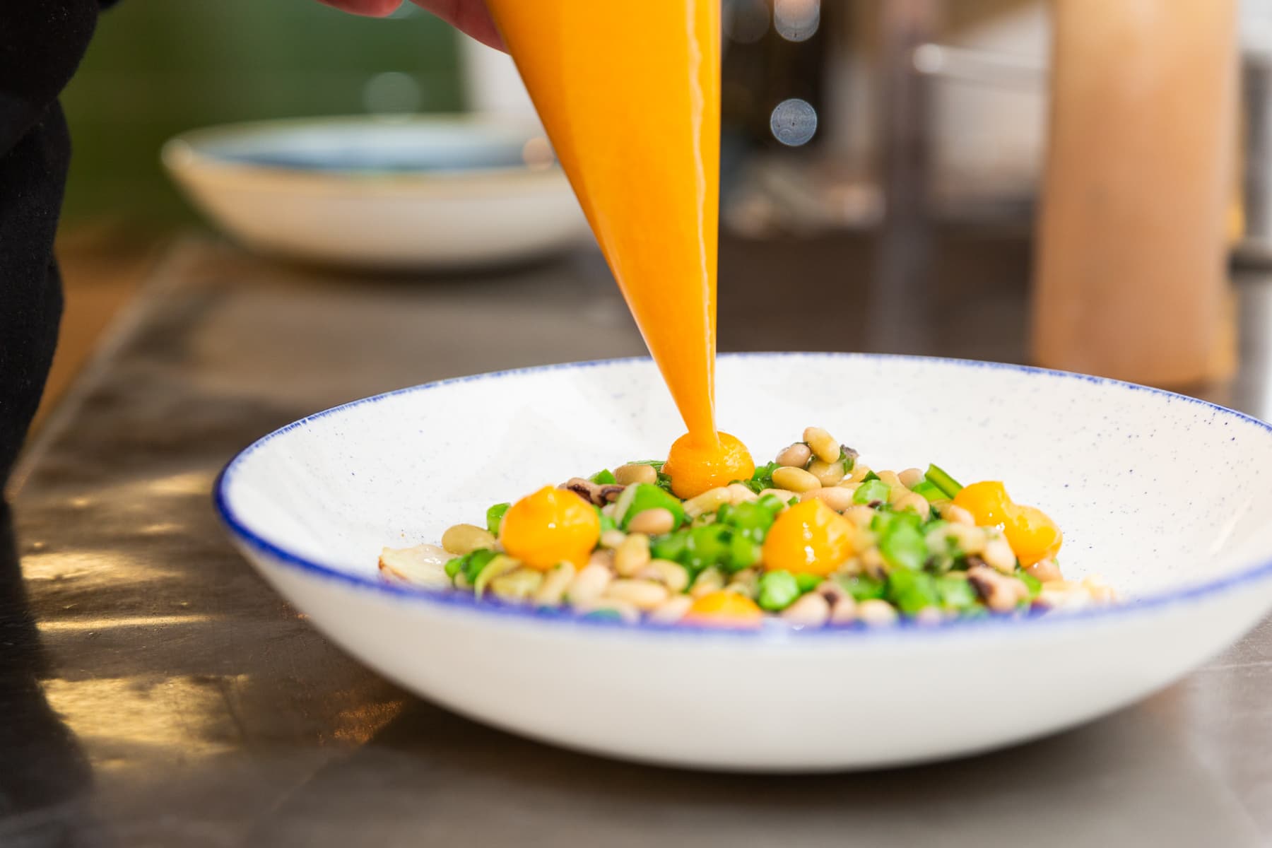 Samira heeft dit gerecht eigenlijk een klein beetje te danken aan Niels. Hij schotelde haar ooit een gerecht voor waar flageoletbonen in waren verwerkt. Die specifieke bonen zijn Samira altijd bijgebleven. Toen Niels haar vroeg of ze een gerecht wilde bedenken voor Vesp, was dat het eerste waar ze aan dacht. Leuk toch? Samira is Samira niet als ze geen creatieve twist aan een gerecht met flageoletbonen weet te geven. Daarom wilt ze graag elementen uit de Japanse keuken eraan toevoegen.